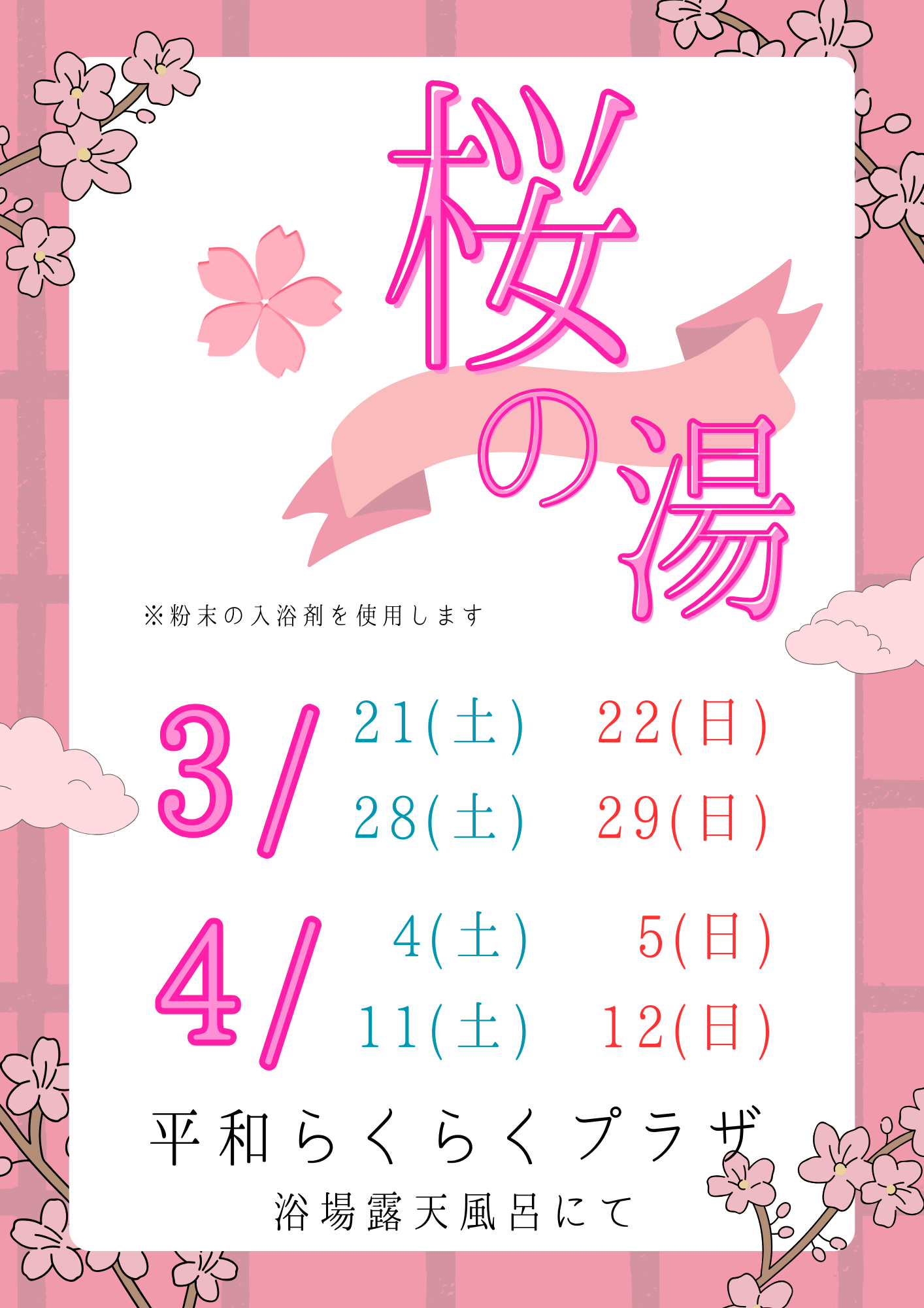 3月と4月の変わり湯は桜の湯を実施します♨♨