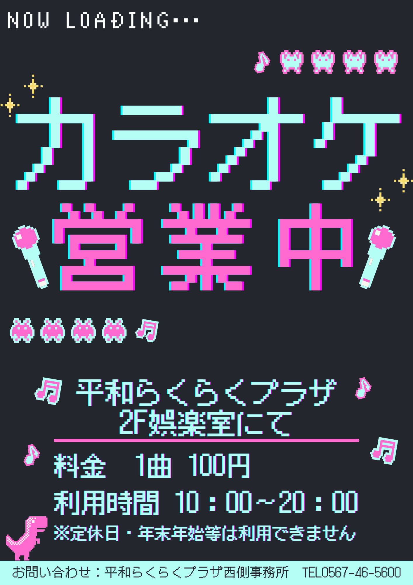 令和7年4月よりカラオケの利用を再開しました!!2F娯楽室にて、1曲100円でご利用いただけます!利用時間は、午前10時から午後8時となっております。詳しくは西側事務所までお問い合わせください。たくさんのご利用お待ちしております!