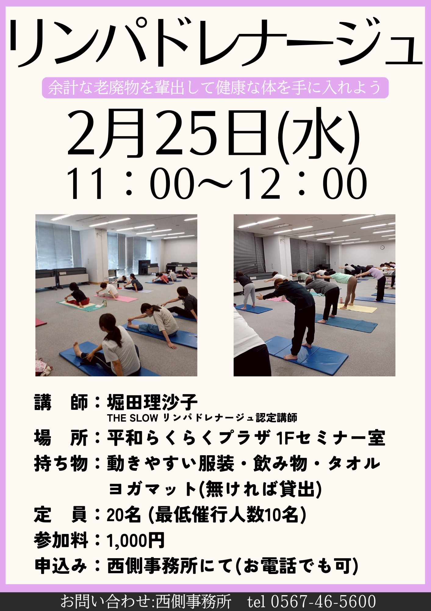 3/13(金)、19:30~20:30にリンパドレナージュ教室を開催いたします。季節の変わり目に免疫力を高めて健康づくりをしませんか?初めての方も経験者も大歓迎☆詳しくは、西側事務所までお問い合わせください。たくさんのご応募お待ちしております。
